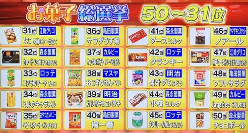 注目のテレビ「国民1万4千人がガチで投票!お菓子総選挙」1万4000人の投票でお菓子メーカー22社、約4500商品の中から上位50商品が決定!情報をまとめました